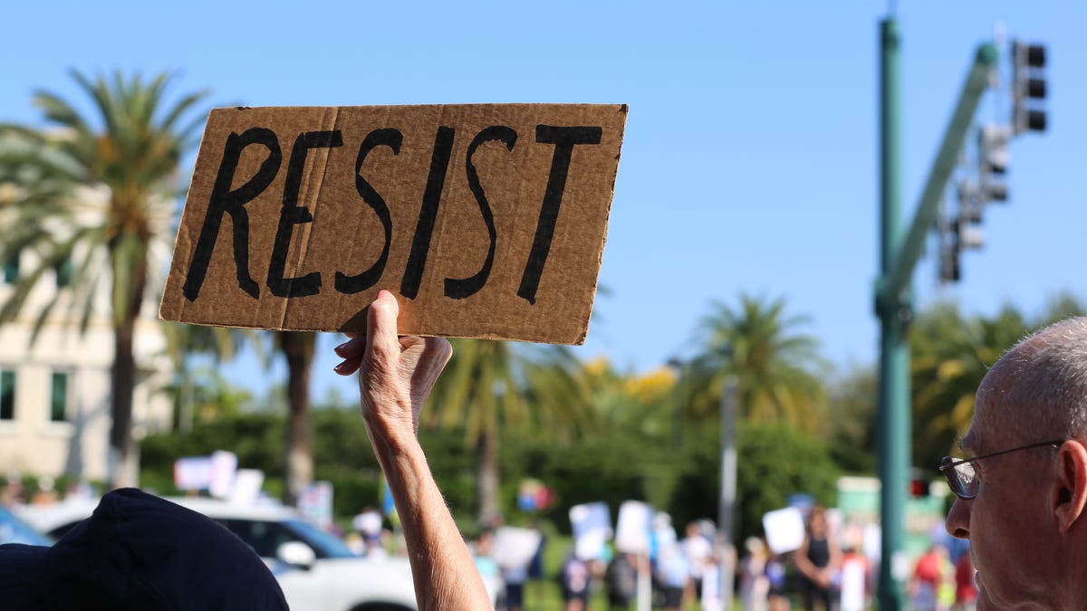 Demonstrators aired grievances about the Trump administration trampling democracy, as the president’s approval ratings hit new lows.